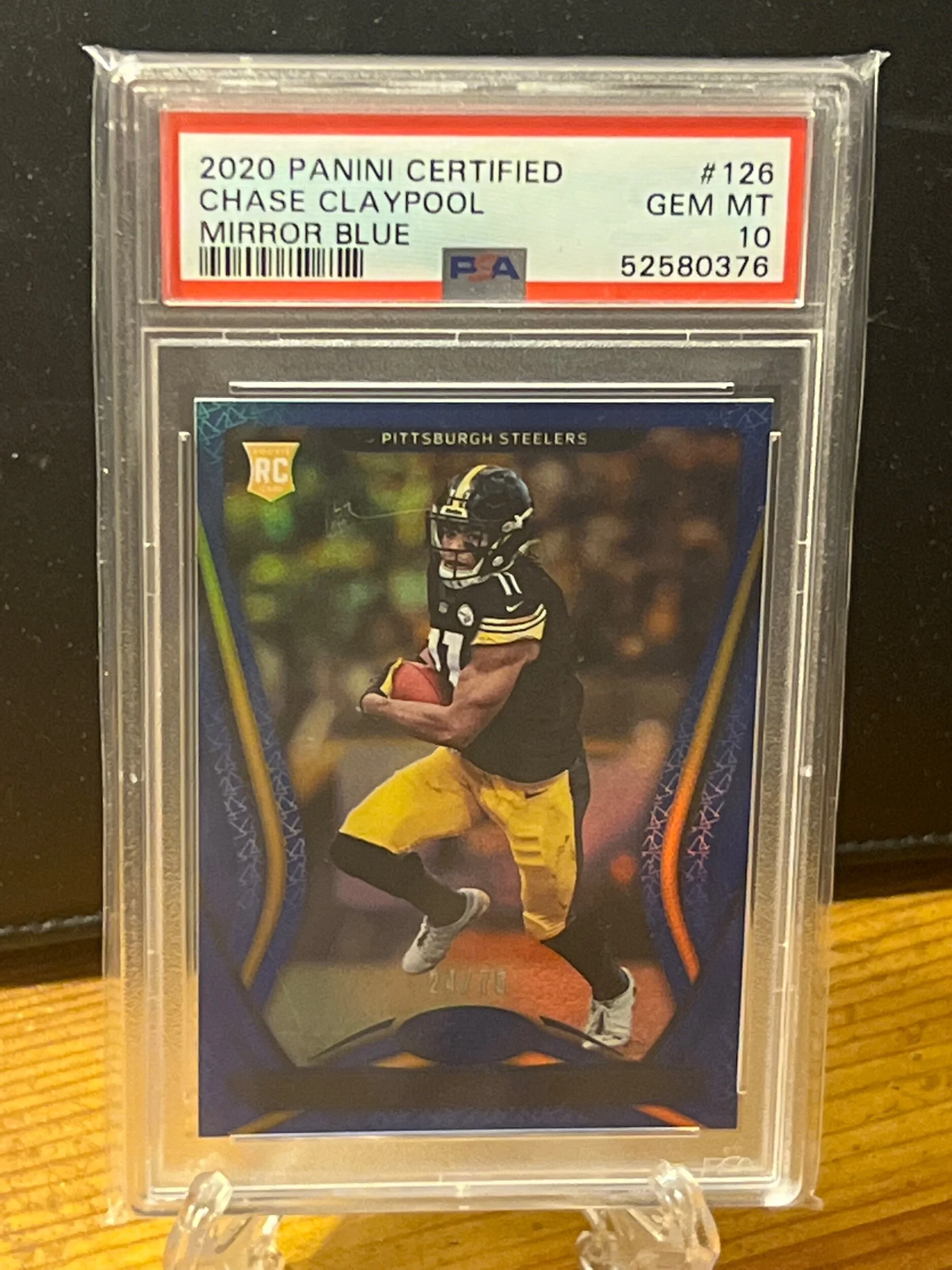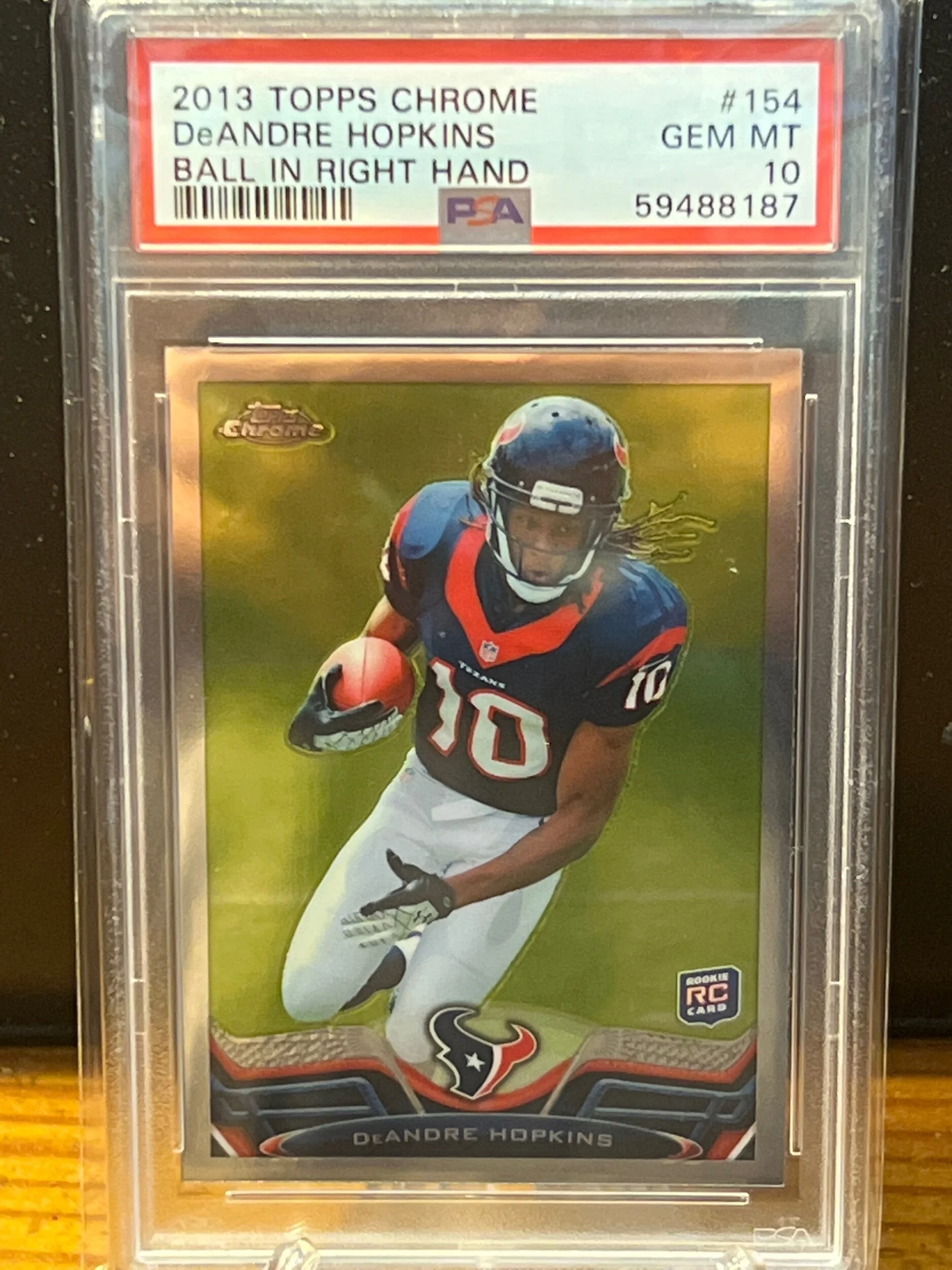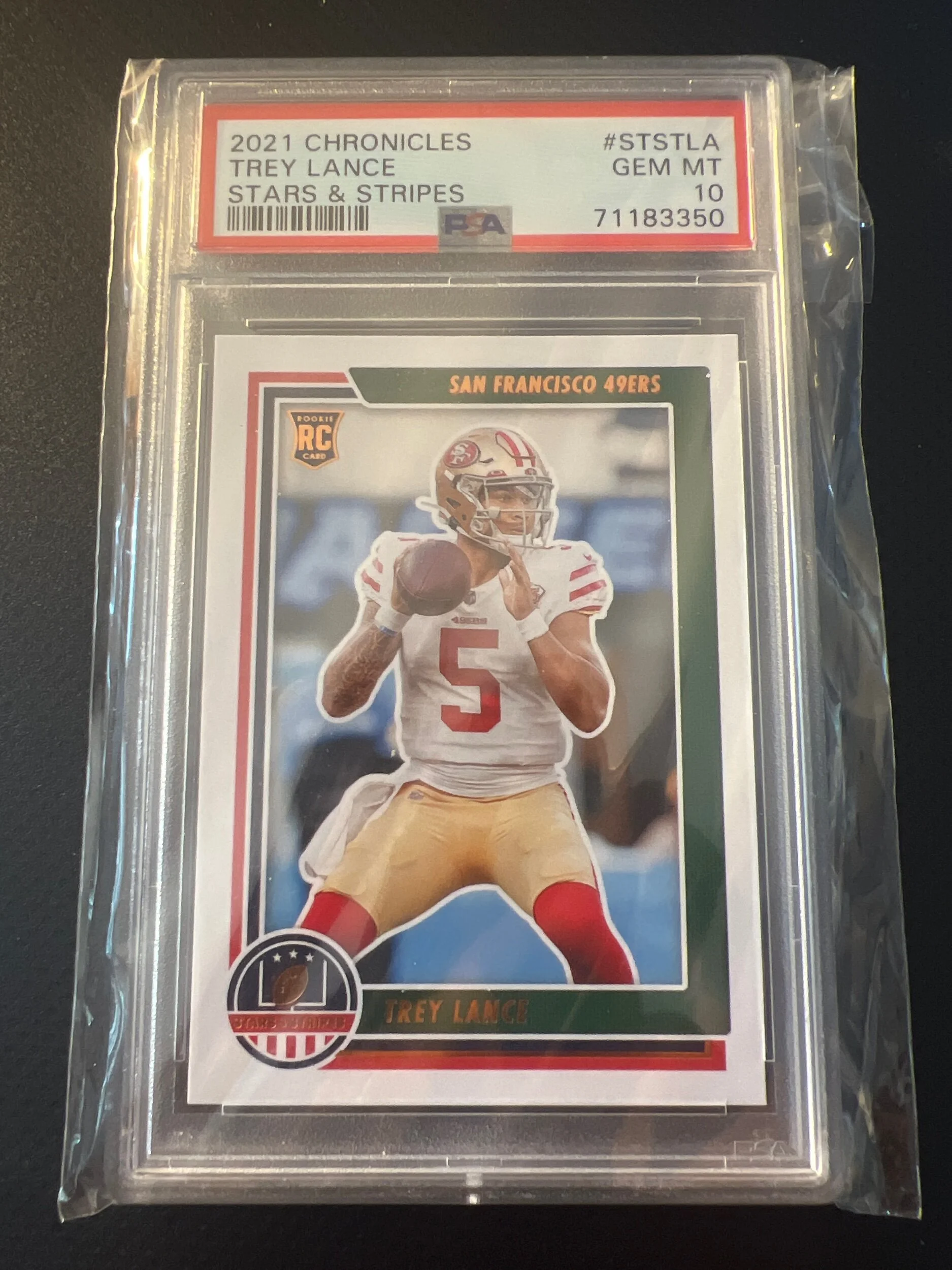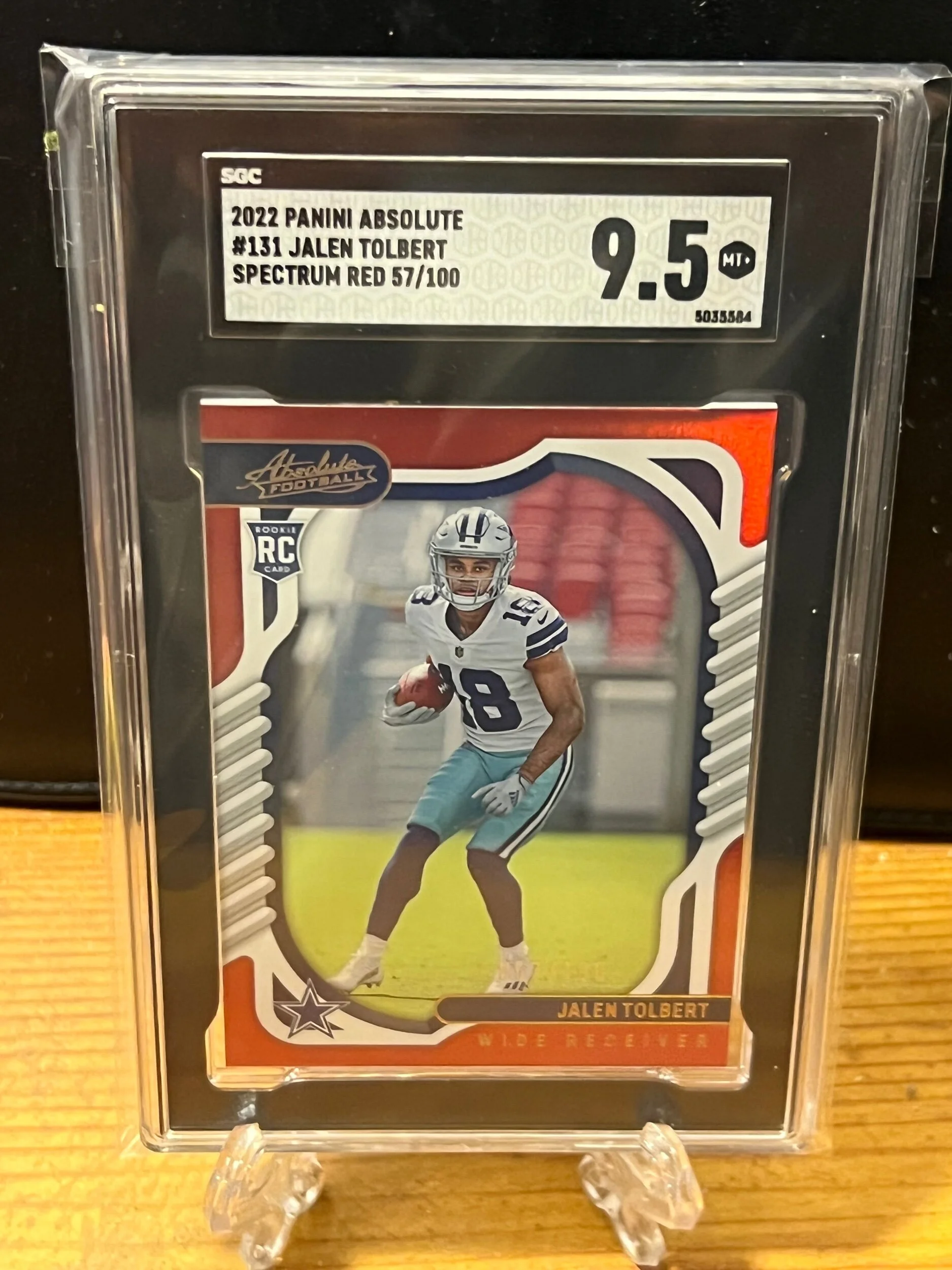 FOOTBALL GRADED CARDS LET’S MAKE A DEAL 2021 Panini Father's Day Ja'Marr Chase explosion SGC 9.5 $700.00 2014 Topps Chrome DAVANTE ADAMS Ref SGC 9.5 $70.00 2014 TOPPS CHROME DAVANTE ADAMS PULSAR REF PSA 9 $125.00 2014 Topps Chrome Davante Adams BLUE WAVE Ref PSA 9 $110.00 2014 Topps Chrome Davante Adams Blue Ref. SGC 9 $125.00 2023 Optic Tank Dell Green Hyper PSA10 $75.00 2014 Topps Chrome Derek Carr PSA 10 $35.00 Sold out 2022 Prizm Tua Tagovailoa Green Scope PSA 10 $150.00 2014 Topps #424 Aaron Donald PSA 10 $100.00 1979 Topps #3 Rushing Leaders PSA 7 $70.00 2005 UD Aaron Rodgers Rookie Premier SGC 10 $240.00 2018 Optic Baker Mayfield Pink SGC 10 $75.00 2023 Optic Dontayvion Wicks Purple Shock PSA 10 $100.00 2005 Topps Bazooka Comic 20 Aaron Rodgers SGC 9 $75.00 2017 Optic CHRISTIAN McCAFFREY Pink Holo PSA 10 $400.00 2014 Topps Chrome Davante Adams BLUE WAVE Ref PSA 10 $150.00 2023 Mosaic ANTHONY RICHARDSON Silver Debut PSA 10 $100.00 2022 Panini Prizm Variations Silver Drake London PSA 10 $200.00 2023 Prizm Flashback Silver Jaxon Smith-Njigba PSA 10 $150.00 2005 Topps Aaron Rodgers PSA 9 $100.00 2023 Mosaic Bryce Young Debut Green PSA 10 $100.00 2005 UD Aaron Rodgers Rookie Premier PSA 10 $300.00 2005 UD Aaron Rodgers Rookie Premier PSA 9 $150.00 2023 Prizm Anthony Richardson Flashback Silver BGS 9 $150.00 2023 Prizm Bryce Young silver Variation PSA 10 $350.00 2014 Topps Chrome Davante Adams Pulsar Ref PSA 10 $250.00 2014 Topps Chrome Davante Adams Pulsar Ref PSA 10 $185.00 2012 Platinum Russell Wilson X-Factor SGC 9 $50.00 2012 platinum Russell Wilson Orange Ref SGC 9 $50.00 2021 Select Zach Wilson Green/Yellow Die Cut SGC 10 $150.00 2021 Wildcard Matte Whire Zach Wilson smoking Guns Silver SGC 10 $200.00 2020 optic Jalen Hurts Preview red/green PSA 10 $250.00 2020 Optic Tua Tagovailoa Blue Scope SGC 10 $200.00 2021 Optic Trevor Lawrence Purple Shock PSA 10 $250.00 2018 Optic Calvin Ridley /50 Purple PSA 10 $250.00 2021 Optic Amon-Ra St. Brown Purple Shock PSA 10 $90.00 Sold out 2017 panini prizm green cooper kupp SGC 9.5 $100.00 2021 Donruss Trey Lance /299 Auto SGC 9.5/10 $120.00 2011 Topps Chrome Julio Jones SGC 9 $40.00 2021 Chronicles Trey Lance Stars & Strips PSA 10 $50.00 2011 Bowman Chrome Julio Jones Rookie Preview SGC 9.5 $65.00 2018 Elite DP Amari Cooper Aspirations Blue SGC 10 $60.00 2014 Bowman Chrome Odell Beckham Jr Ref SGC 10 $40.00 2013 Topps Holiday Halo DeAndre Hopkins SGC 9.5 $60.00 2017 Optic Joe Mixon RED YELLOW SGC 9.5 $60.00 2020 Elite Brandon Aiyuk Aspirations Die-Cut SGC 9.5 $120.00 2022 Select DP Field Level ROB GRONKOWSKI Tri Color Square SGC 10 $70.00 2022 Absolute Jalen Tolbert Red Spectrum SGC 9.5 $40.00 2005 Topps Total Aaron Rodgers SGC 9 $50.00 2011 Bowman Chrome Julio Jones Rookie Preview PSA 10 $80.00 2008 UD Matt Ryan Rookie Premiere PSA 10 $60.00 2018 Score Baker Mayfield RC Auto BGS 9.5 $150.00 2007 Upper Deck Darrelle Revis 1st Edition PSA 10 $150.00 2004 Topps Total Tom Brady #AW20 RC BGS 9.0 $40.00 2021 Score Devonta Smith End Zone RC HGA 9.0 $225.00 2013 Chrome DeAndre Hopkins RC PSA 10 $20.00 Sold out 2014 Chrome 1985 Devante Adams RC PSA 10 $80.00 2020 Mosaic Chase Claypool RC mosaic Auto PSA 10 $150.00 2021 Mosaic Kadarius Toney Rookie Scripts PSA 10 $135.00 2009 Topps Magic Matthew Stafford SGC 9.5 $60.00 1981 TOPPS #216 JOE MONTANA PSA 5 $65.00 Sold out 2014 Topps Platinum Davante Adams x-factor PSA 10 $125.00 2013 Topps Finest DeAndre Hopkins PSA 10 $40.00 Sold out 2020 Certified Chase Claypool Mirror Blue PSA 10 $75.00