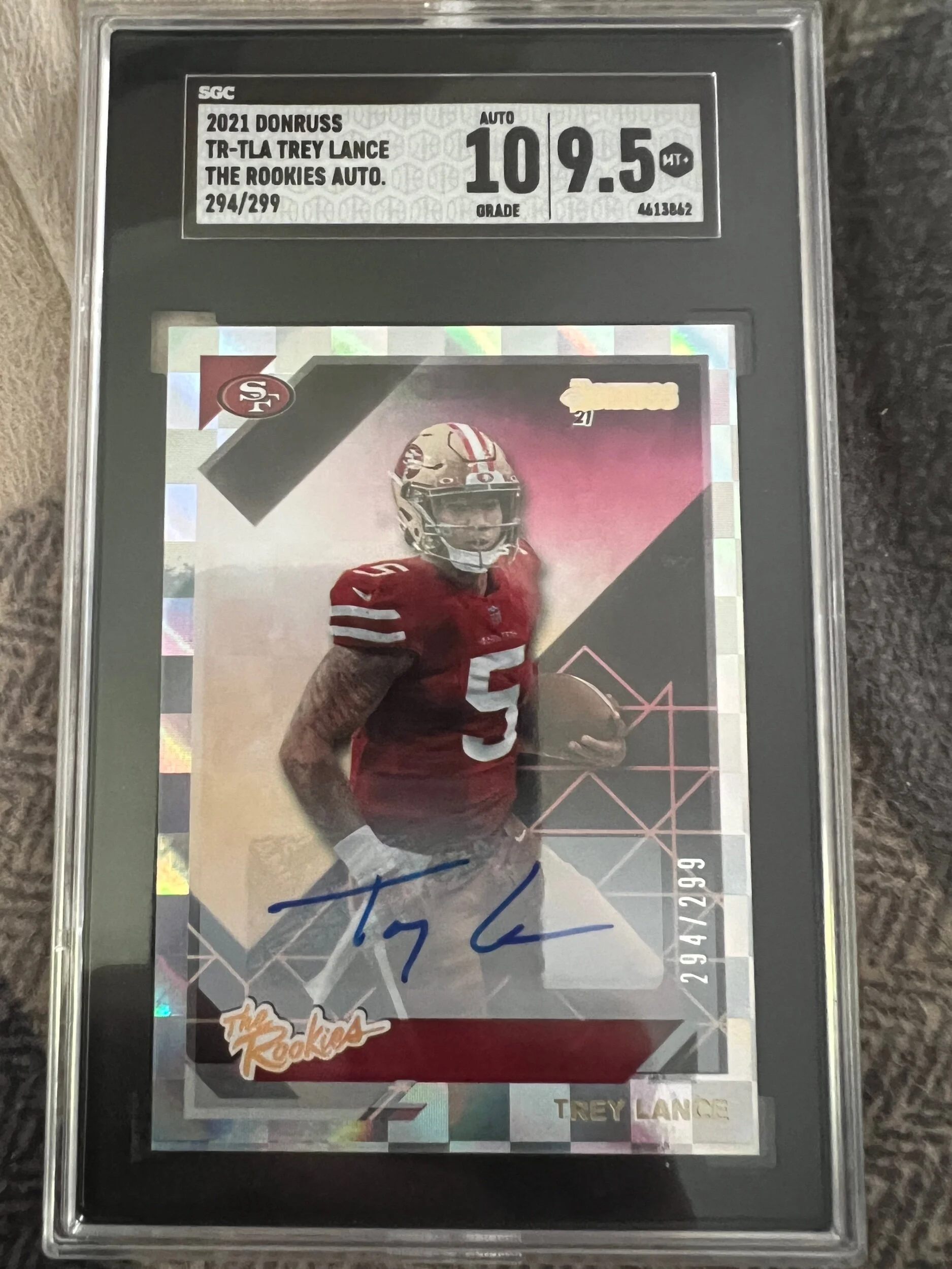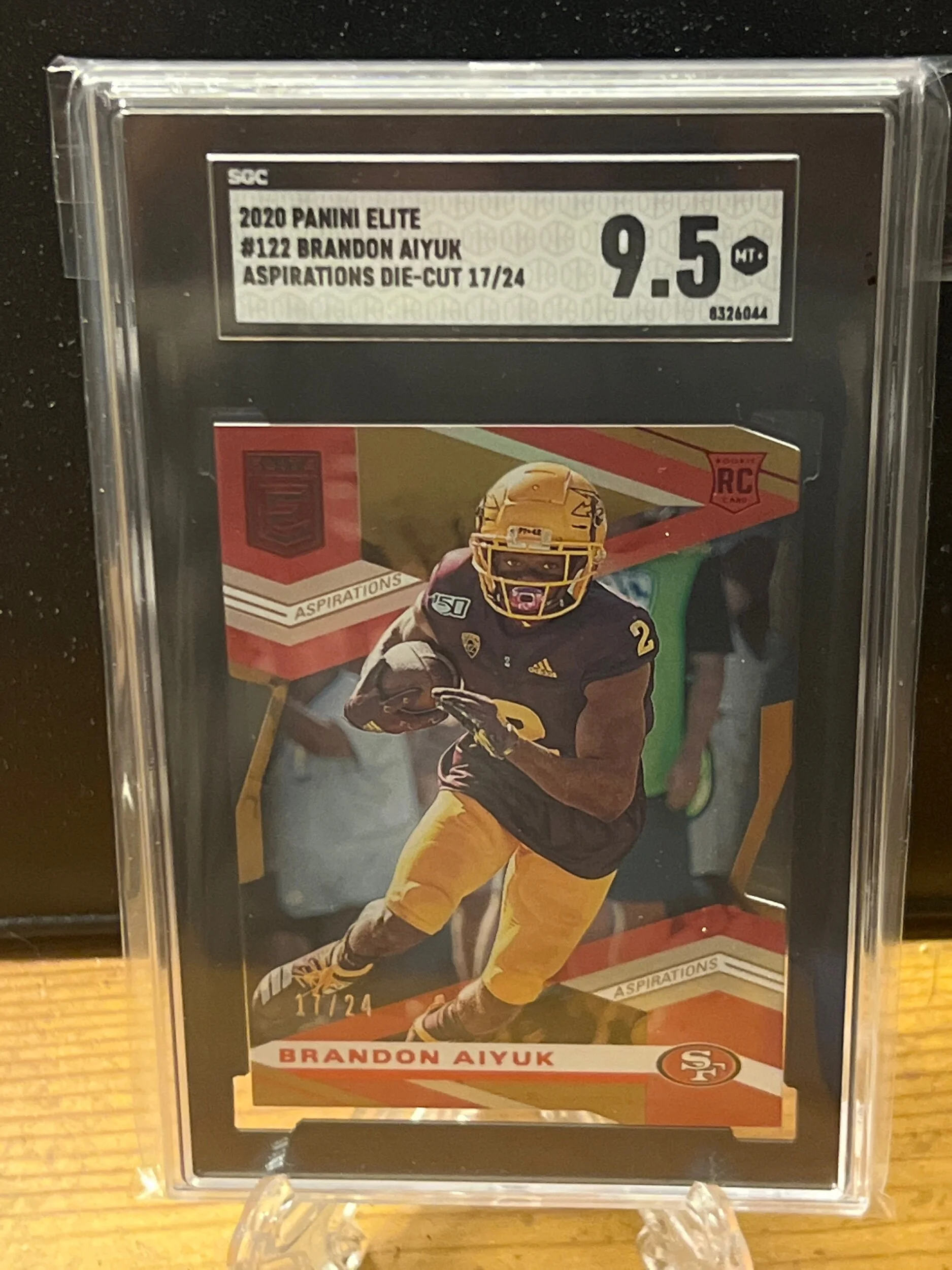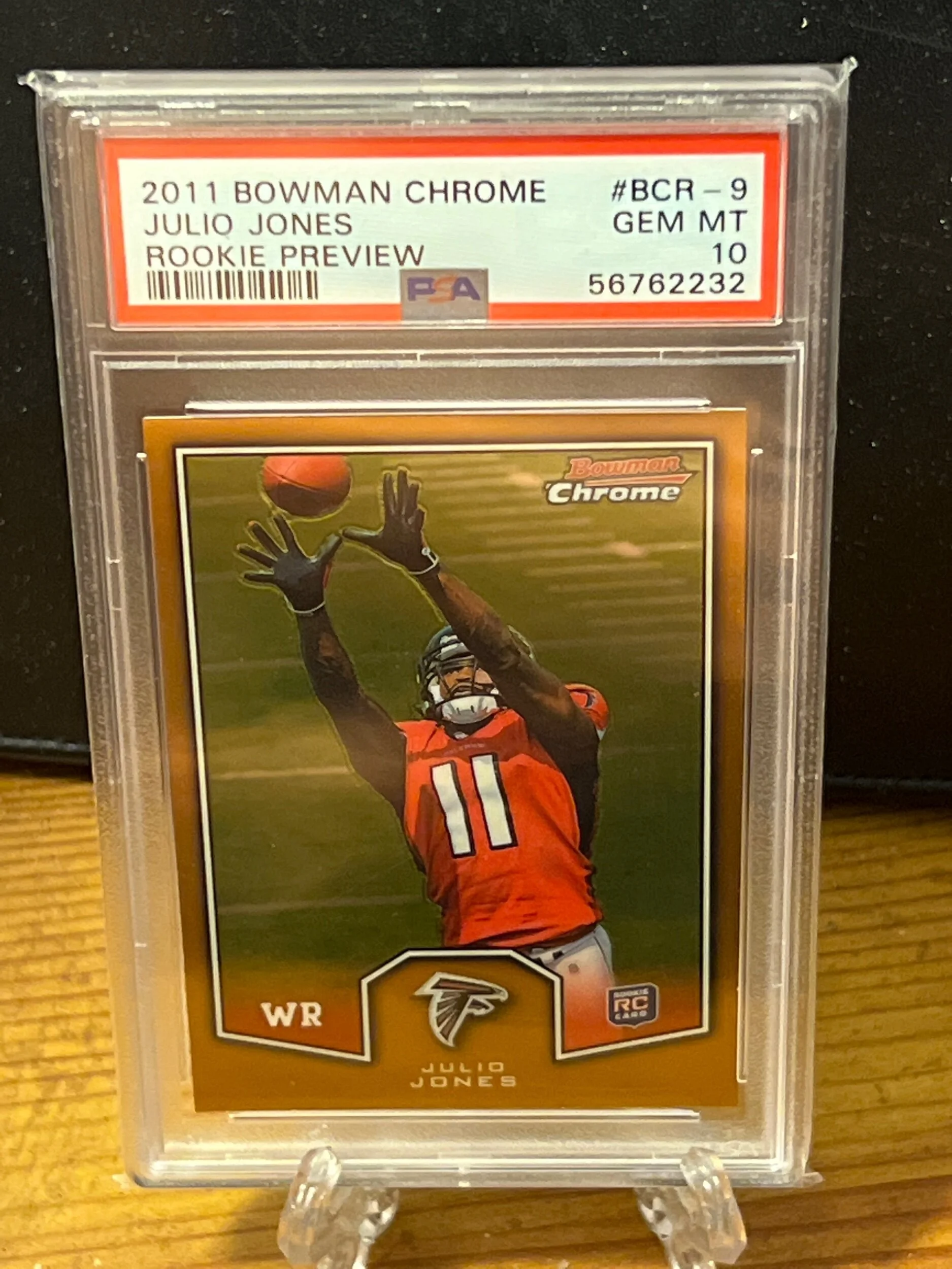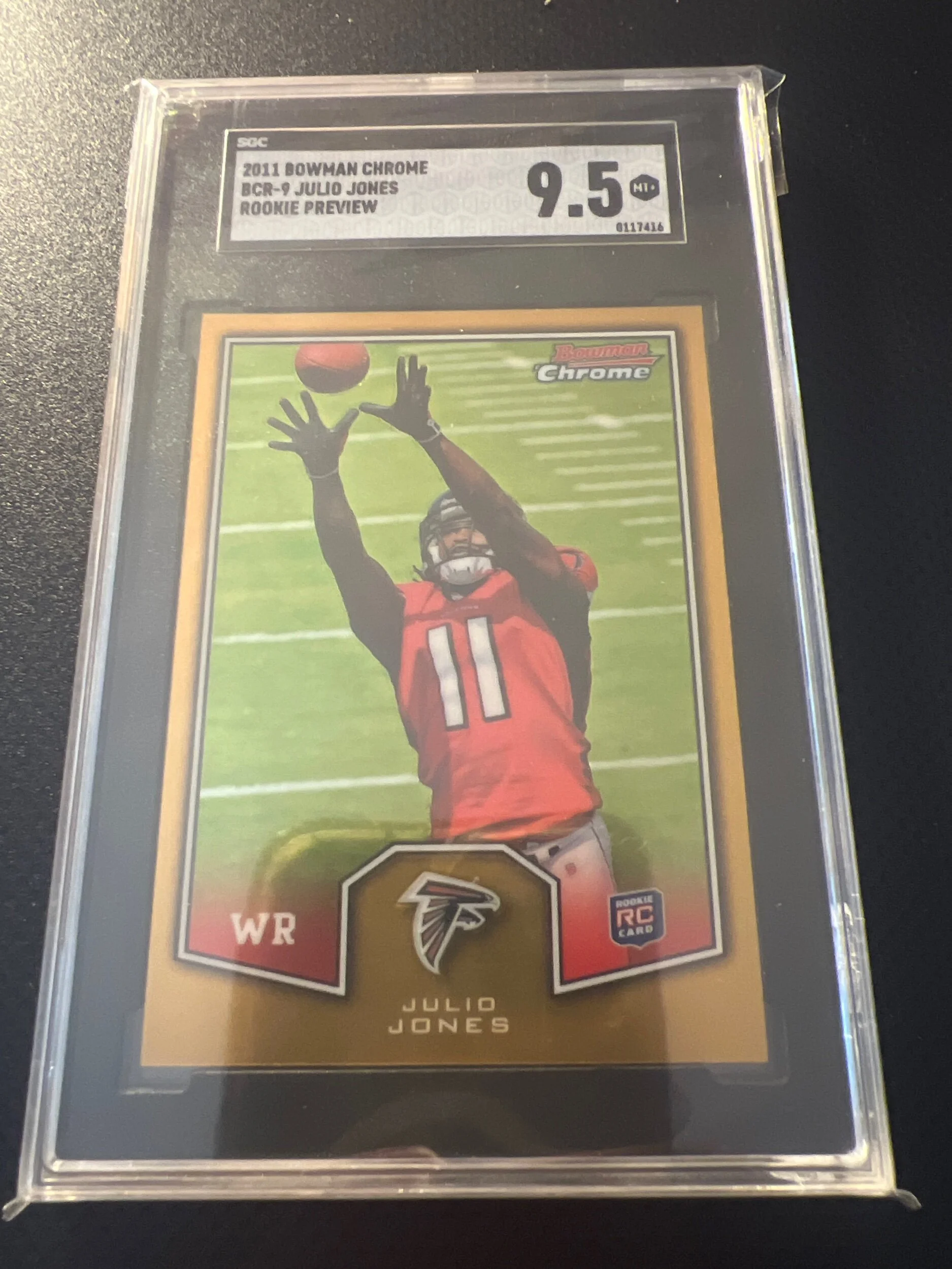 FOOTBALL GRADED CARDS LET’S MAKE A DEAL 2021 Panini Father's Day Ja'Marr Chase explosion SGC 9.5 $700.00 2014 Topps Chrome DAVANTE ADAMS Ref SGC 9.5 $70.00 2014 TOPPS CHROME DAVANTE ADAMS PULSAR REF PSA 9 $125.00 2014 Topps Chrome Davante Adams BLUE WAVE Ref PSA 9 $110.00 2014 Topps Chrome Davante Adams Blue Ref. SGC 9 $125.00 2023 Optic Tank Dell Green Hyper PSA10 $75.00 2014 Topps Chrome Derek Carr PSA 10 $35.00 Sold out 2022 Prizm Tua Tagovailoa Green Scope PSA 10 $150.00 2014 Topps #424 Aaron Donald PSA 10 $100.00 1979 Topps #3 Rushing Leaders PSA 7 $70.00 2005 UD Aaron Rodgers Rookie Premier SGC 10 $240.00 2018 Optic Baker Mayfield Pink SGC 10 $75.00 2023 Optic Dontayvion Wicks Purple Shock PSA 10 $100.00 2005 Topps Bazooka Comic 20 Aaron Rodgers SGC 9 $75.00 2017 Optic CHRISTIAN McCAFFREY Pink Holo PSA 10 $400.00 2014 Topps Chrome Davante Adams BLUE WAVE Ref PSA 10 $150.00 2023 Mosaic ANTHONY RICHARDSON Silver Debut PSA 10 $100.00 2022 Panini Prizm Variations Silver Drake London PSA 10 $200.00 2023 Prizm Flashback Silver Jaxon Smith-Njigba PSA 10 $150.00 2005 Topps Aaron Rodgers PSA 9 $100.00 2023 Mosaic Bryce Young Debut Green PSA 10 $100.00 2005 UD Aaron Rodgers Rookie Premier PSA 10 $300.00 2005 UD Aaron Rodgers Rookie Premier PSA 9 $150.00 2023 Prizm Anthony Richardson Flashback Silver BGS 9 $150.00 2023 Prizm Bryce Young silver Variation PSA 10 $350.00 2014 Topps Chrome Davante Adams Pulsar Ref PSA 10 $250.00 2014 Topps Chrome Davante Adams Pulsar Ref PSA 10 $185.00 2012 Platinum Russell Wilson X-Factor SGC 9 $50.00 2012 platinum Russell Wilson Orange Ref SGC 9 $50.00 2021 Select Zach Wilson Green/Yellow Die Cut SGC 10 $150.00 2021 Wildcard Matte Whire Zach Wilson smoking Guns Silver SGC 10 $200.00 2020 optic Jalen Hurts Preview red/green PSA 10 $250.00 2020 Optic Tua Tagovailoa Blue Scope SGC 10 $200.00 2021 Optic Trevor Lawrence Purple Shock PSA 10 $250.00 2018 Optic Calvin Ridley /50 Purple PSA 10 $250.00 2021 Optic Amon-Ra St. Brown Purple Shock PSA 10 $90.00 Sold out 2017 panini prizm green cooper kupp SGC 9.5 $100.00 2021 Donruss Trey Lance /299 Auto SGC 9.5/10 $120.00 2011 Topps Chrome Julio Jones SGC 9 $40.00 2021 Chronicles Trey Lance Stars & Strips PSA 10 $50.00 2011 Bowman Chrome Julio Jones Rookie Preview SGC 9.5 $65.00 2018 Elite DP Amari Cooper Aspirations Blue SGC 10 $60.00 2014 Bowman Chrome Odell Beckham Jr Ref SGC 10 $40.00 2013 Topps Holiday Halo DeAndre Hopkins SGC 9.5 $60.00 2017 Optic Joe Mixon RED YELLOW SGC 9.5 $60.00 2020 Elite Brandon Aiyuk Aspirations Die-Cut SGC 9.5 $120.00 2022 Select DP Field Level ROB GRONKOWSKI Tri Color Square SGC 10 $70.00 2022 Absolute Jalen Tolbert Red Spectrum SGC 9.5 $40.00 2005 Topps Total Aaron Rodgers SGC 9 $50.00 2011 Bowman Chrome Julio Jones Rookie Preview PSA 10 $80.00 2008 UD Matt Ryan Rookie Premiere PSA 10 $60.00 2018 Score Baker Mayfield RC Auto BGS 9.5 $150.00 2007 Upper Deck Darrelle Revis 1st Edition PSA 10 $150.00 2004 Topps Total Tom Brady #AW20 RC BGS 9.0 $40.00 2021 Score Devonta Smith End Zone RC HGA 9.0 $225.00 2013 Chrome DeAndre Hopkins RC PSA 10 $20.00 Sold out 2014 Chrome 1985 Devante Adams RC PSA 10 $80.00 2020 Mosaic Chase Claypool RC mosaic Auto PSA 10 $150.00 2021 Mosaic Kadarius Toney Rookie Scripts PSA 10 $135.00 2009 Topps Magic Matthew Stafford SGC 9.5 $60.00 1981 TOPPS #216 JOE MONTANA PSA 5 $65.00 Sold out 2014 Topps Platinum Davante Adams x-factor PSA 10 $125.00 2013 Topps Finest DeAndre Hopkins PSA 10 $40.00 Sold out 2020 Certified Chase Claypool Mirror Blue PSA 10 $75.00